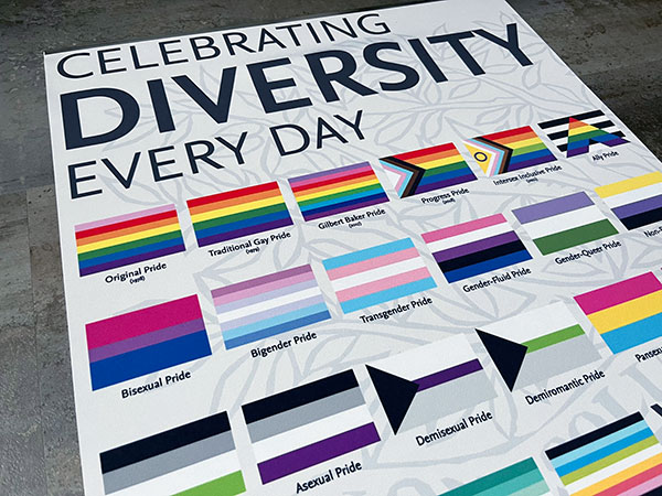 Für das unternehmenseigene Pride Chapter (LGBTIQ+ Netzwerk) wurden sowohl die Designs als auch die Konzepte für diverse Medien (Aufkleber, Tassen, Poster, ...) erstellt und deren Druckabwicklung koordiniert.