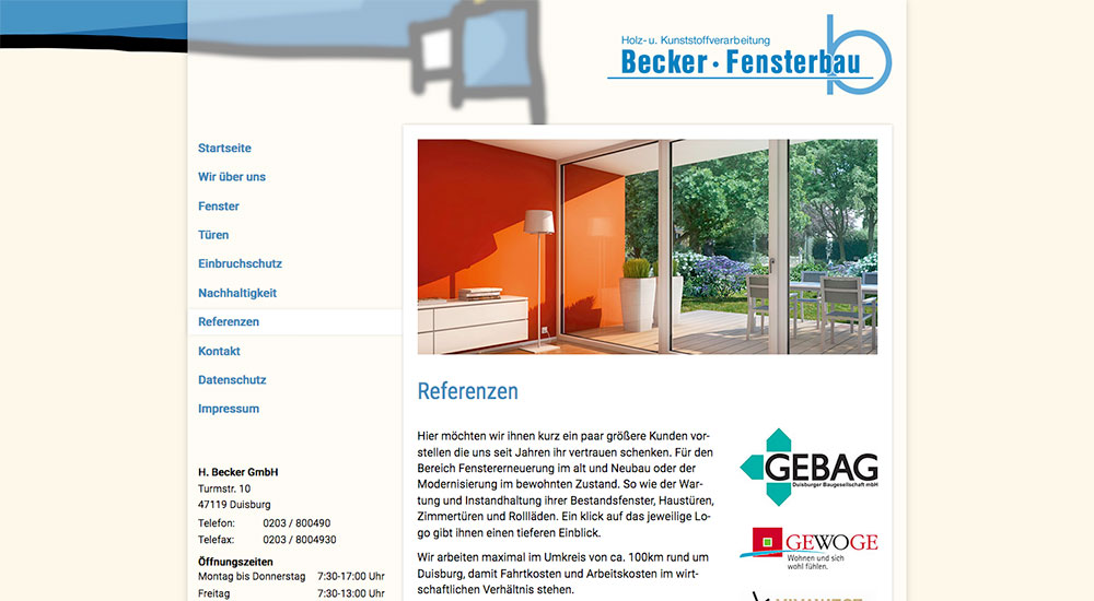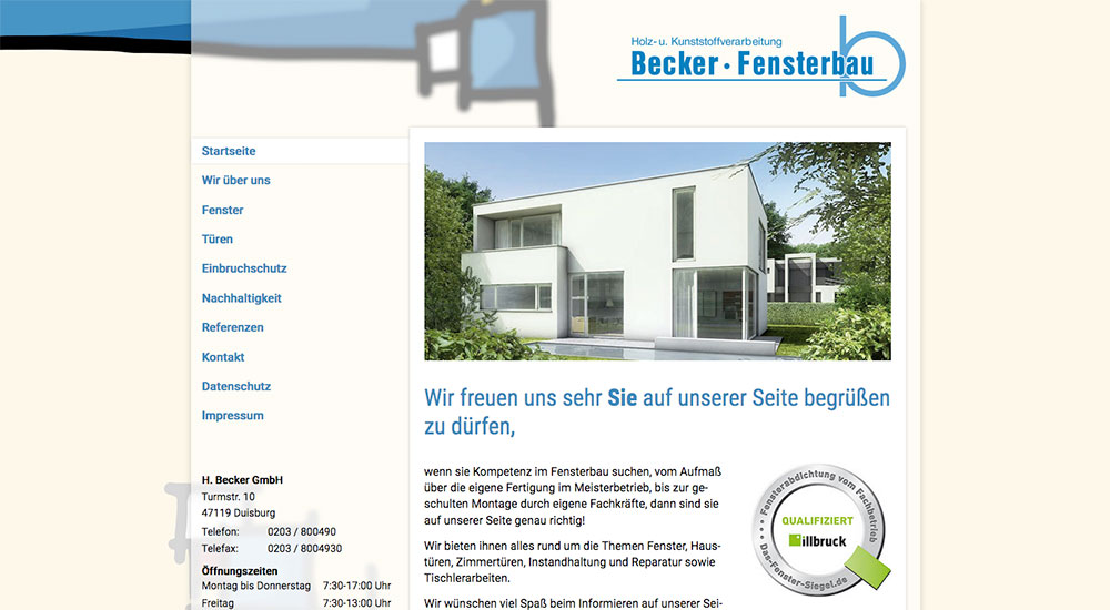 Becker Fensterbau ist ein mittelständisches Unternehmen, welches klassische Scheinerarbeiten bis hin zu Wartung, Montage und Fertigung von Fenstern und Haustüren anbietet.