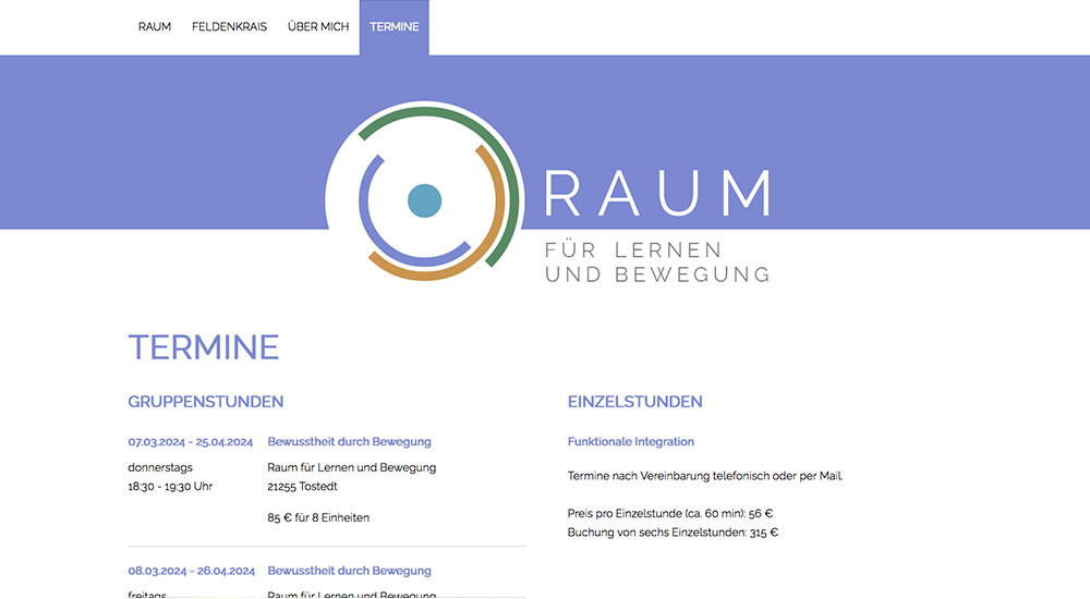 Unter Feldenkrais Hosemann bietet die Feldenkrais-Lehrerin und Berufspädagogin Martina Hosemann ihre Einzel- und Gruppenstunden zur Feldenkrais-Methode an.