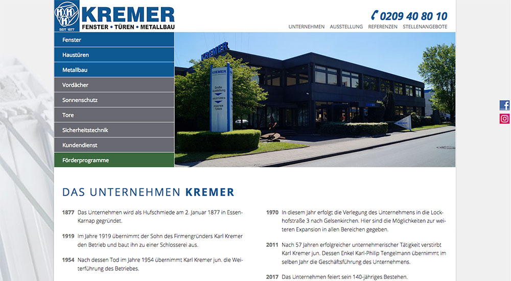 Die Firma Kremer ist ein auf die Herstellung und Montage von qualitativ hochwertigen Bauelementen spezialisiertes mittelständisches Unternehmen mit Sitz in Gelsenkirchen Schalke.