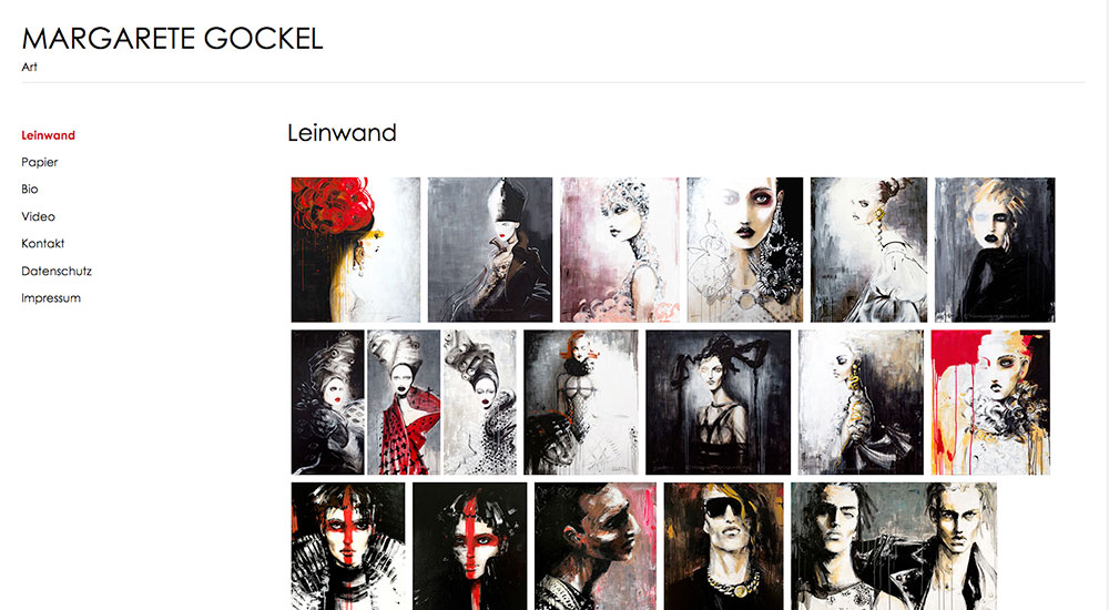 Die Gestaltung der beiden Webseiten ist bewusst schlicht gehalten, um Raum für die Kunstwerke zu schaffen und nicht von diesen abzulenken.